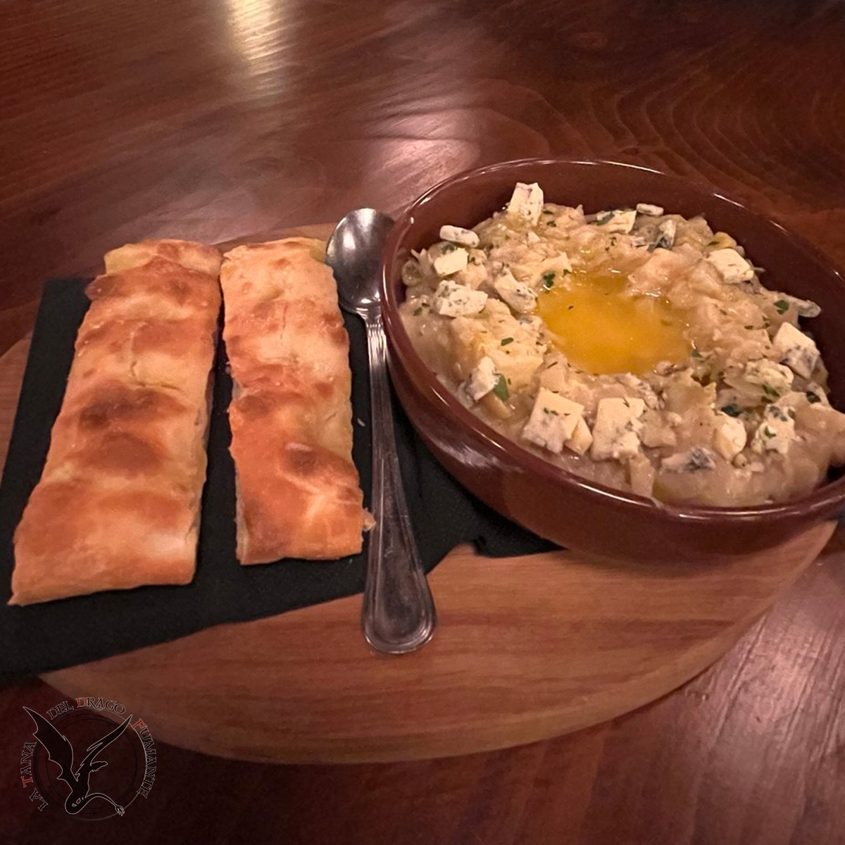 Dalla tradizione irlandese, un capolavoro reinterpretato in stile Tana, a base di smash di patate, verza e porri, con burro fuso e goloso gorgonzola. Schiacciata toscana* in accompagnamento